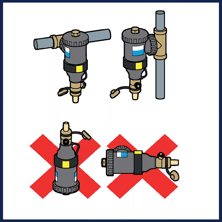 Kunststof magnetisch vuilfilter. Verwijdert alle onzuiverheden uit het verwarmingswater.