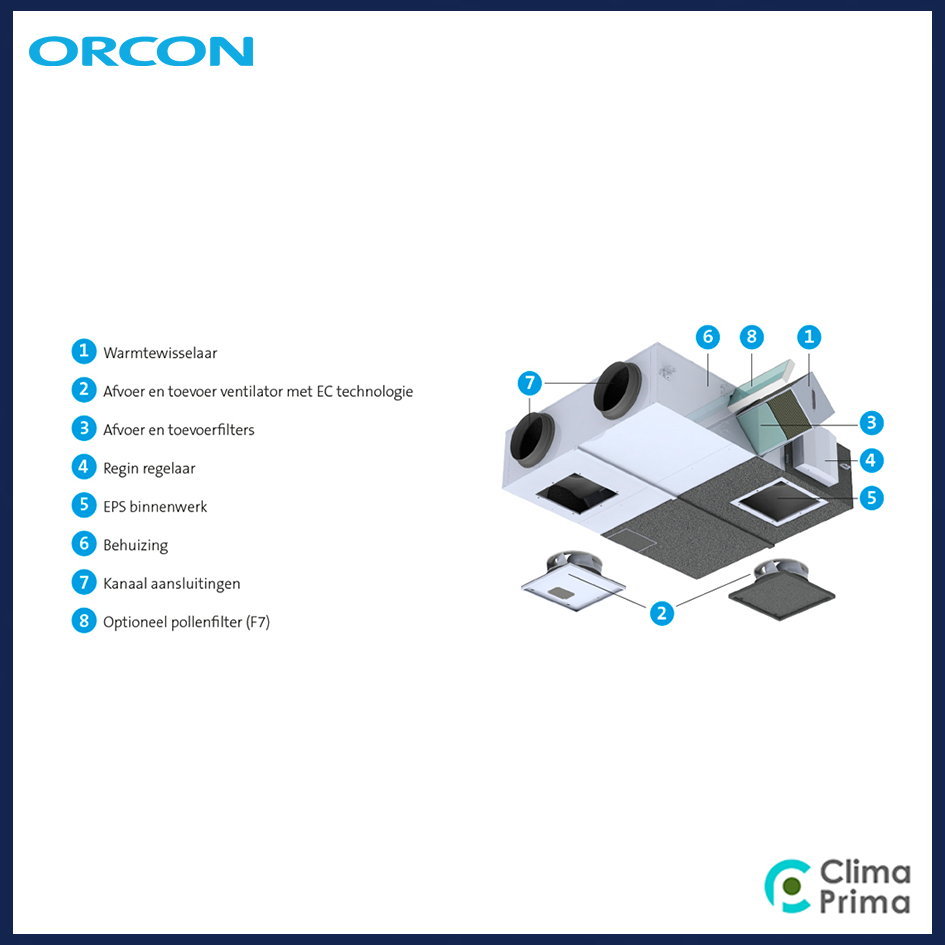 - Energiebesparing: Het maakt gebruik van energiezuinige EC-motoren en een kruisstroomwisselaar die tot 80% van de warmte terugwint.